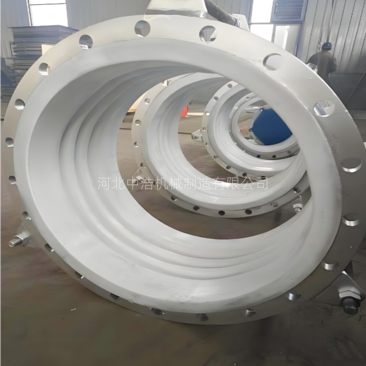 中浩機械從源頭的選型與出廠進行優化, 我們一般選擇整體模壓成型的襯四氟補償器,避免襯四氟拼接式襯層,減少拼接處因應力集中而脫落風險,出廠前切記做襯層附著力測試和氣密性實驗,卻使襯層與金屬波紋之間無氣泡和虛黏。其二杜絕安裝環節強制受力,在安裝時使波紋補償器處于自由狀態不可為配合管道長度強行拉扯或擠壓,否則四氟層會因為波紋變形開裂而脫落位移量要嚴格遵循相關參數標準。安裝時用水平儀校準軸線避免管道軸向偏差,切記不要用補償器本身校正橫向錯位或扭轉,防止襯層受力而破損。螺栓要按對角順序分次扭緊,不可單側擰緊,避免法蘭襯四氟層因局部擠壓變形而脫離波紋。