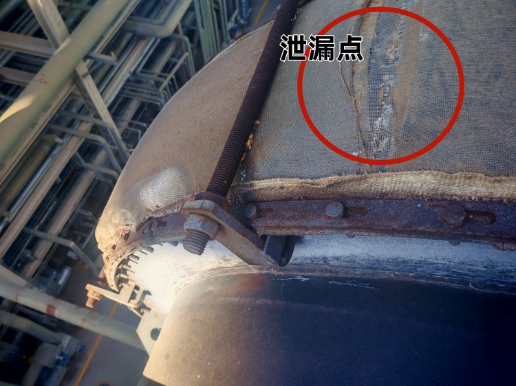 連接部位密封失效造成高頻漏點,可能由于法蘭密封面平整度不達標,法蘭螺栓緊固不均勻 導致蒙皮法蘭周邊受力不均,出現泄露。密封墊片材質與介質不匹配,墊片老化、安裝錯位、變形,未貼合法蘭密封面。也可能蒙皮法蘭螺栓螺栓壓條松動,壓條采用殘料拼接,規格尺寸不符,無法有效壓緊蒙皮。